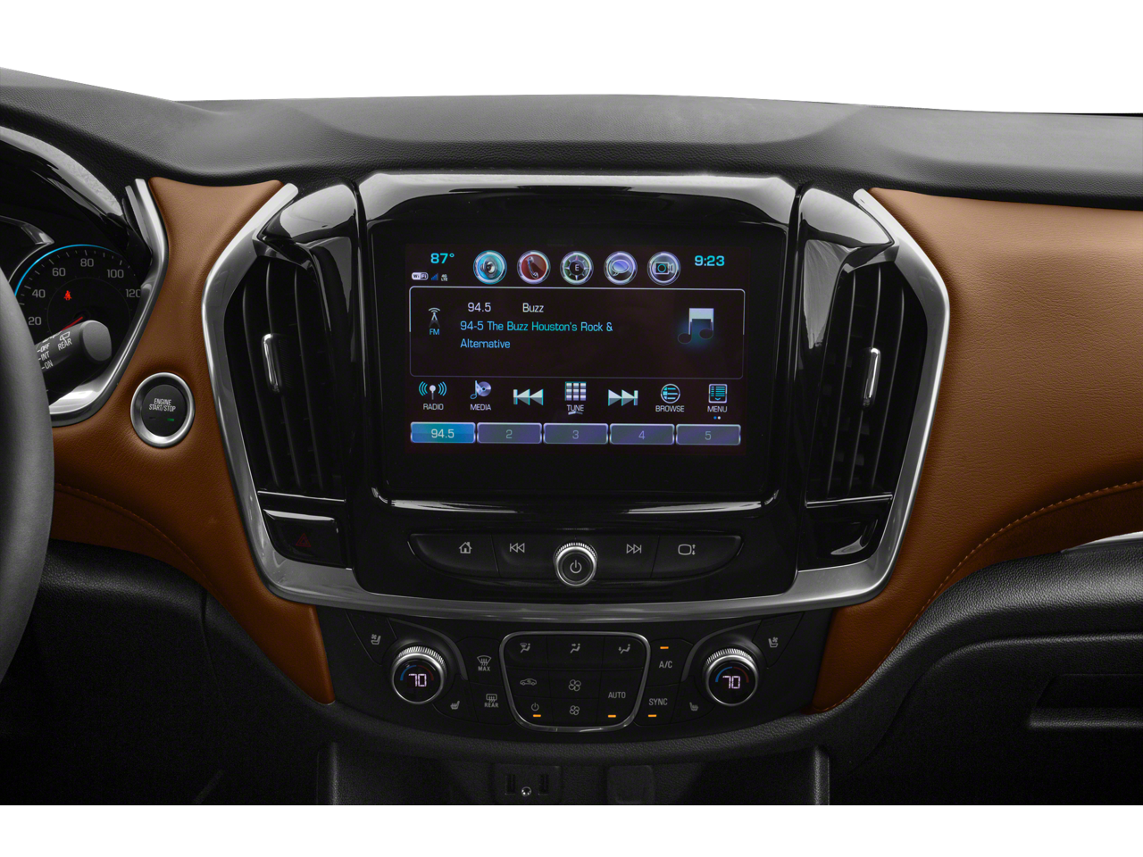WHEELS, 20" (50.8 CM) ARGENT METALLIC MACHINE FACED ALUMINUM (STD), TRANSMISSION, 9-SPEED AUTOMATIC (STD), SEATS, FRONT BUCKET (STD), PREMIER PREFERRED EQUIPMENT GROUP Includes Standard Equipment, JET BLACK, PERFORATED LEATHER-APPOINTED SEAT TRIM, GRAPHITE METALLIC, ENGINE, 3.6L V6, SIDI, VVT (310 hp [232.0 kW] @ 6800 rpm, 266 lb-ft of torque [361 N-m] @ 2800 rpm) (STD), AUDIO SYSTEM, CHEVROLET MYLINK RADIO with Navigation, 8" diagonal color touch-screen and AM/FM stereo, includes Bluetooth® streaming audio for music and most phones; featuring Android Auto and Apple CarPlay capability for compatible phones (STD), Wireless Charging for devices, Wipers, front intermittent with washers. This Chevrolet Traverse has a strong Gas V6 3.6L/ engine powering this Automatic transmission.